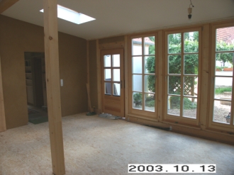 errichtung eines wintergartens temperieranlage, wände lehmputz, fußboden osb, dachdämmung zellulose