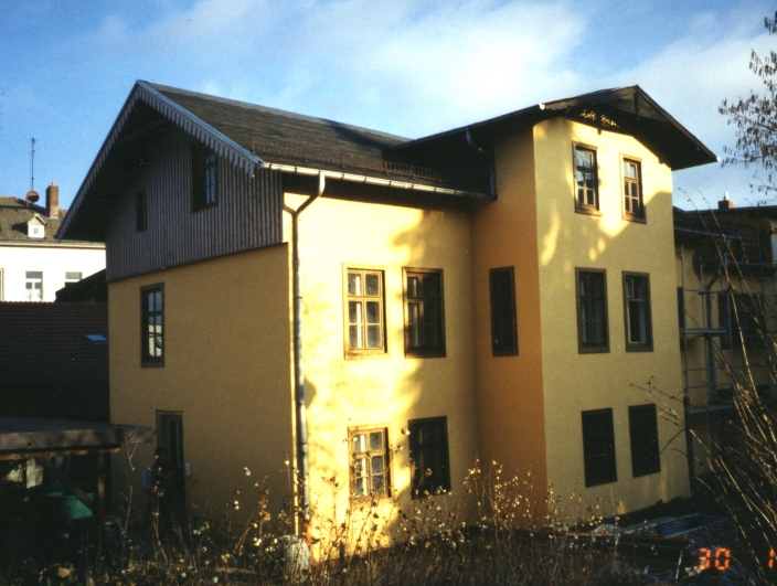fassadengestaltung mit schilfrohrdämmung und lehmputz gestrichen